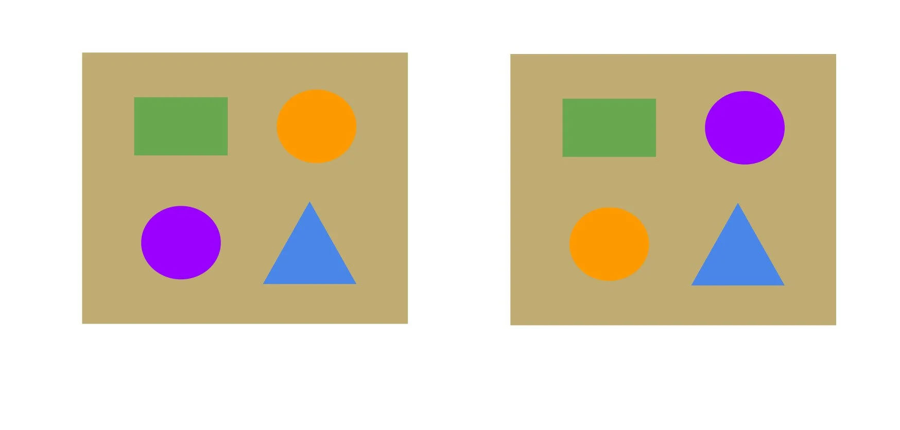 Now we have two possible arrangements where the purple and orange circle slots are interchangeable. This is a multiplicity of two.