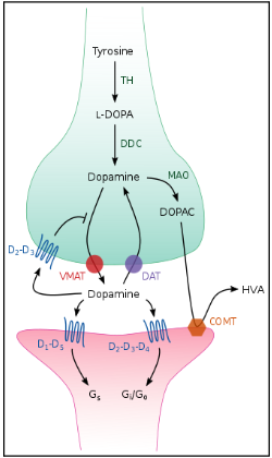 Figure 1: Dopamine receptor and processes.